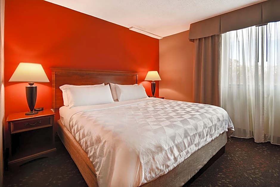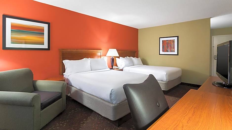 This room includes accessibility features including visual alarms and a hand-held shower head.